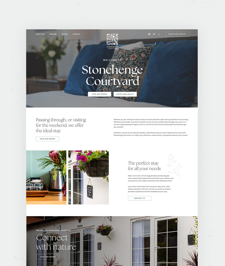Nestled in the heart of Amesbury, just a stone’s throw away from the iconic Stonehenge, lies the charming Stonehenge Courtyard. This delightful bed and breakfast has recently undergone a transformative rebranding and website overhaul, courtesy of the creative minds at Blue Bee.